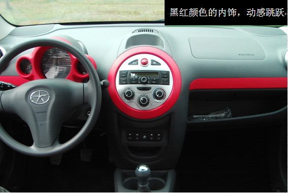 內(nèi)飾上,黑紅顏色的大膽運用,以及繡球狀中控臺的設計凸顯了整車的時尚動感,可以說在國內(nèi)轎車中獨樹一幟。包裹型的座椅、6向可調(diào)節(jié)頭枕、電動外后視鏡、四門電動車窗等標配,也將悅悅與傳統(tǒng)代步車區(qū)分開來。最大的亮點是高配車型搭載的MP5+6道揚聲系統(tǒng),4.3英寸的超大顯示屏、可外連MP3、U盤的USB接口,這些中高級車型才有的配置,在悅悅這款A0級車身上也得到了實現(xiàn)。