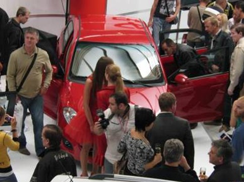 車展當(dāng)日,各大媒體記者及蜂擁而至的現(xiàn)場觀眾將奇瑞展臺圍得水泄不通,只為一睹來自東方的又一經(jīng)典力作。隨著覆蓋車體的紅布被揭開,現(xiàn)場再次掀起高潮,接連的閃光燈下,兩位烏克蘭美女車模使風(fēng)云2更顯光鮮靚麗。