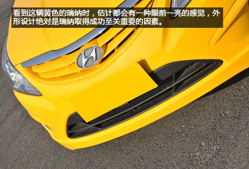 看到這輛黃色的瑞納時,估計都會有一種眼前一亮的感覺,外形設(shè)計絕對是瑞納取得成功至關(guān)重要的因素,它應用了和現(xiàn)代ix35以及新索納塔YF相同的設(shè)計理念,也就是“流體雕塑”理念,通過復雜多變的線條來刻畫車身的動感效果,尤其是對于一款非常需要修飾曲線的三廂車型而言。