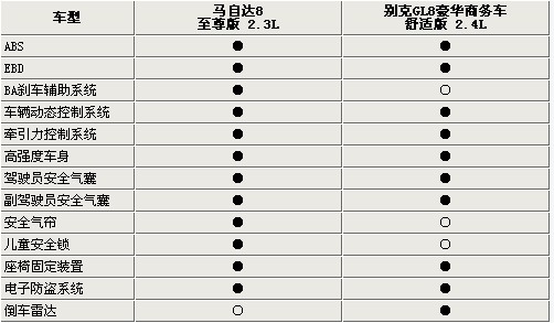 馬自達8至尊版和別克GL8豪華商務車舒適版的安全配置都比較全面,從上表我們可以看到,在電子主動安全系統(tǒng)的配備中,ABS+EBD、動態(tài)控制系統(tǒng)、牽引力控制系統(tǒng)以及高強度車身等必備安全裝備都出現在了這兩款車型上。相比之下馬自達8的安全配置則更為全面,剎車輔助系統(tǒng)可以剪短剎車距離,安全氣簾可以更加有效的降低乘客的傷害。不過比較遺憾的是馬自達8沒有配備倒車雷達。