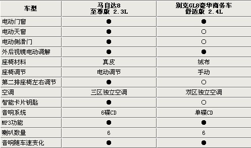 作為商務MPV車型,馬自達8至尊版和別克GL8豪華商務車舒適版的配置還是比較令人滿意的。但相比之下馬自達8的裝備絕對可以算是齊全。馬自達8至尊版配備了電動側滑門,這是一項十分體面的配置,在售價25萬元這個區(qū)間的車型里是十分少見的。三區(qū)獨立空調系統(tǒng)可以更加精準的滿足不同乘客的需求。做為座椅的舒適度絕對于MPV車型來說絕對是十分重要的,這一點馬自達8也充分的體現出來了,出了考慮到座椅的舒適度外,還考慮到其的方便性,第二排座椅可以左右移動,這也是同級別車型中的獨享配置。