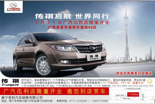 廣汽迅利店作為廣西首家傳祺4S店,也是目前廣西唯一一家傳祺轎車授權(quán)4S店,公司位于南寧市秀廂大道109號(hào)金源汽車城東側(cè),集合了整車銷售、售后服務(wù)、零件供應(yīng)、信息反饋、汽車金融和維修服務(wù)等全方位職能。秉承“以客戶為中心,以誠信為根本,以服務(wù)贏未來”的經(jīng)營理念,設(shè)立“創(chuàng)造銷量第一,客戶滿意度第一,創(chuàng)立良好的的品牌形象”的經(jīng)營目標(biāo),為實(shí)現(xiàn)“顧客第一,爭(zhēng)當(dāng)行業(yè)引領(lǐng)者”的愿景持續(xù)努力。在產(chǎn)品銷售、售后服務(wù)、維修技術(shù)等方面都達(dá)到了業(yè)內(nèi)的最高水準(zhǔn)