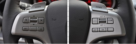 那么,針對網(wǎng)友的問題,我們就先從功能說起,我們從正面看去,方向盤上主要左右兩個多功能按鍵區(qū),還有兩組換擋撥片,左側(cè)的主要功能是控制音響并通過“CF-Net”人機交互系統(tǒng)完成對空調(diào)、音響系統(tǒng)、行車電腦顯示信息等多種功能的控制(后面將詳細介紹),而右側(cè)功能鍵控制車輛的定速巡航功能。同時,睿翼帶有方向盤換擋撥片,左右各一組撥片均能單獨實現(xiàn)加減檔操作,無論你是左撇子還是右撇子,均能夠在手動模式下依靠單手操控撥片進行加減檔。