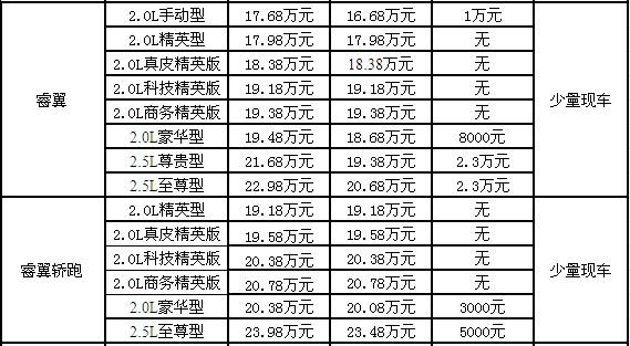 想買車?就買“駕駛之王”睿翼吧,16.68萬起售的價格讓睿翼具有非常高的性價比,作為一汽馬自達主推的轎車,該車的性能大家是無需置疑的。目前售價如下: