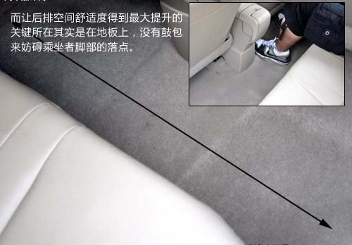 對(duì)于身高180cm的編輯來(lái)說(shuō),騰翼C30的前排空間比較寬裕,而后排頭部空間就顯得不足了。編輯的頭部已經(jīng)完全的頂在了車頂。但腿部空間的剩余量還是很大的,如果乘客愿意將身體向下躺一點(diǎn)的話,那頭部空間也就不會(huì)那么拮據(jù)了。而讓后排空間舒適度得到最大提升的關(guān)鍵所在其實(shí)還是在地板上,中央平坦的后排地板脫離了大部分車型的“鼓包”現(xiàn)象,讓乘坐者的腳步落點(diǎn)不再受到障礙。