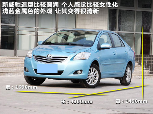 豐田新威馳在在一貫走中庸路線的豐田車(chē)型中已經(jīng)算比較有突破性的,無(wú)論前臉還是尾部設(shè)計(jì),新威馳的造型都很圓潤(rùn),而且?guī)в袔追挚蓯?ài),個(gè)人感覺(jué)新威馳應(yīng)該很招年輕女性的喜愛(ài),同時(shí)新威馳獨(dú)有的淺藍(lán)金屬外觀色讓其看起來(lái)十分清新。新威馳長(zhǎng)寬高分別達(dá)到了4300mm、1690mm和1490mm,完全滿足了家庭A0級(jí)轎車(chē)的身材,同時(shí)也滿足了年輕消費(fèi)者對(duì)轎車(chē)的使用需求。