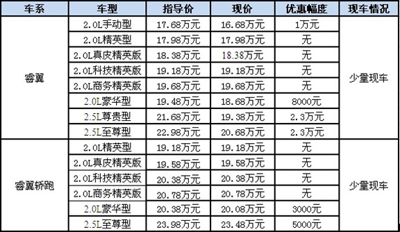 一汽馬自達(dá)睿翼最近受到消費(fèi)者的青睞,銷量飆升,目前,鑫廣達(dá)一汽馬自達(dá)4S店還有少量現(xiàn)車,喜歡的朋友可要抓緊了哦!售價(jià)如下: