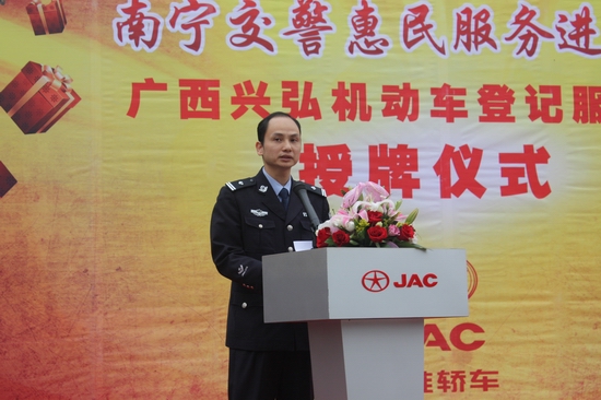 為了鼓勵南寧的4S店都開展帶牌銷售業(yè)務,南寧市車管所副所長周廣,以及金源工作站的負責人方警官、林警官都出席了授牌儀式。在4S店實際操作的環(huán)節(jié),車管所的警官們還現(xiàn)場進行了指導,讓汽車在店內(nèi)入戶辦理更迅速。周副所長說4S店帶牌銷售是南寧交警惠民服務的一個部分,利用企業(yè)的資源完成車管業(yè)務的一些工作,減輕了車管所的壓力!敝芨彼L還介紹,如果一切順利,一輛新車在4S店辦理入戶手續(xù),一個小時內(nèi)就能完成。
