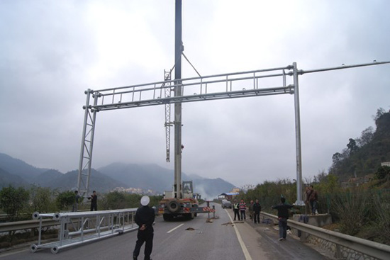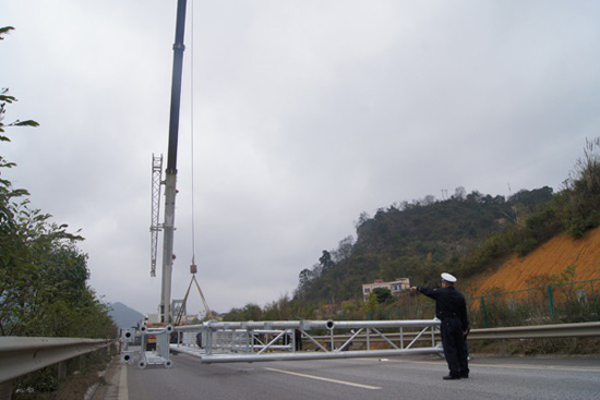 2月25日上午11點(diǎn),友誼關(guān)國(guó)際智能交通監(jiān)控卡口相關(guān)設(shè)備的安裝工作正式開(kāi)始。憑祥交警大隊(duì)則在南友高速公路憑祥出口、萬(wàn)通物流園互通路口、隘口互通路口等地?cái)[入提示牌,并通過(guò)廣西交通臺(tái)等媒體播發(fā)南友高速卡口安裝路段實(shí)行單向通行交通管制的信息。該大隊(duì)民警一方面在現(xiàn)場(chǎng)協(xié)助施工人員施工,一方面在各路口站崗執(zhí)勤,禁止過(guò)往車輛駛?cè)胧┕ぢ范危嵝褟V大駕駛員改走其他道路。在該大隊(duì)民警的努力下,卡口龍門架吊裝、調(diào)試工作順利。