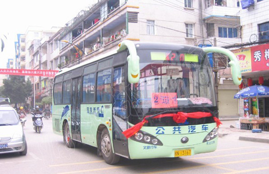 近日,浦北縣人民群眾盼望已久的公共汽車在縣城正式投入運營?h城公共汽車的開通,極大的方便了群眾的出行。