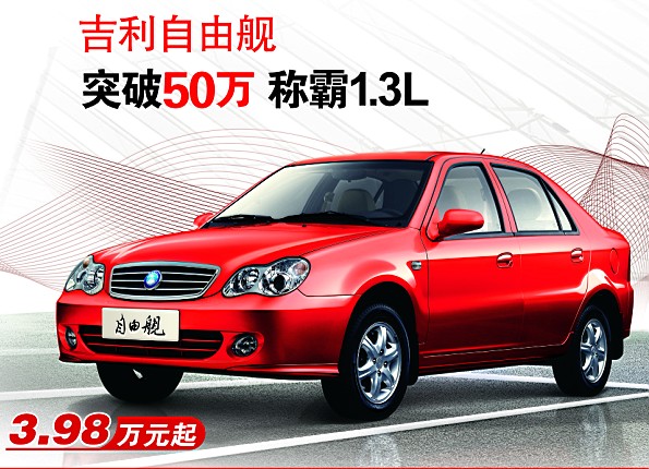 百萬(wàn)見證信賴,進(jìn)取締造輝煌。自由艦連續(xù)四年蟬聯(lián)1.3L銷量冠軍,50萬(wàn)輛銷售佳績(jī),使得自由艦在同級(jí)車型中脫穎而出,成為自主品牌熱銷車型的典型代表,也讓我們看到了消費(fèi)者對(duì)自由艦的信賴。2011年,新款自由艦即將上市,在傳承自由艦穩(wěn)定品質(zhì)的基礎(chǔ)上,經(jīng)典將再度延續(xù)。