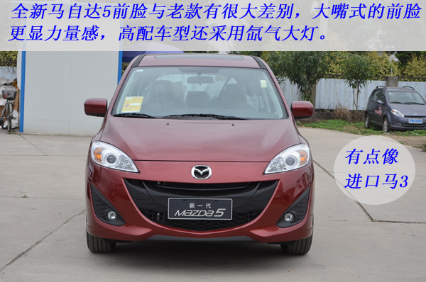 新款馬自達5相對于老款來說,在外觀上可以說有著全新的改變,新款車型前臉采用了馬自達的最新的家族式前臉造型,流線型的前臉設計配合樹葉形的前大燈,讓人感覺動感而時尚。