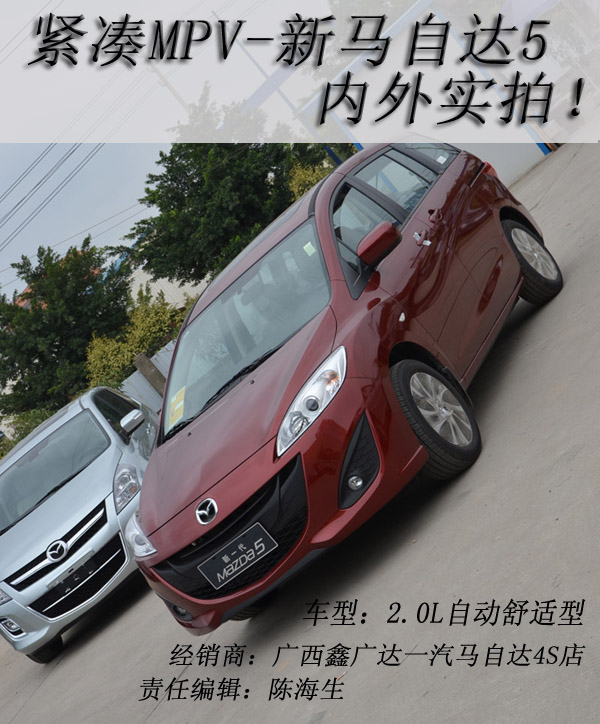 (廣西汽車網(wǎng) 訊)實用緊湊的MPV車型--馬自達5已經(jīng)上市,編輯在獲悉新車已經(jīng)到達廣西后,第一時間趕到廣西鑫廣達一汽馬自達4S店,對這款充滿運動與時尚的MPV進行實拍,給大家送上一份視覺大餐。