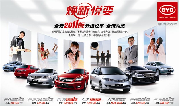據(jù)悉,比亞迪2011版全系車型全面切換為國4排放標準,其中,F(xiàn)0、F3、F3R、G3等車型還配備全鋁合金發(fā)動機,同時全系新車融入了國際合作的造車理念,采用了荻原先進模具制造技術(shù),實現(xiàn)了強勁動力與環(huán)保節(jié)能的平衡。除了全系數(shù)十項整體提升之外,各車型在配置上的細節(jié)優(yōu)化也是可圈可點:功勛車型F3白金11版增加桃木紋裝飾中控臺等提升舒適度;主流中高級轎車F6黃金11版增配DVD移動電視和藍牙通訊系統(tǒng)等,全面開啟數(shù)字新生活;F0尚酷11版底盤離地間隙提升為140mm,使得通過性更強;F3R時尚11版在中控臺等細部增添鈦銀、鍍鉻裝飾;中級熱銷車型G3數(shù)智11版增配全球領(lǐng)先的無鑰匙數(shù)碼電子防盜系統(tǒng)。值得一提的是,M6和L3兩款人氣新銳車型,也分別推出了M6尊穩(wěn)版和L3鋒暢版,進一步豐富車型矩陣的同時,更為消費者帶來了更多選擇和“悅變”體驗。