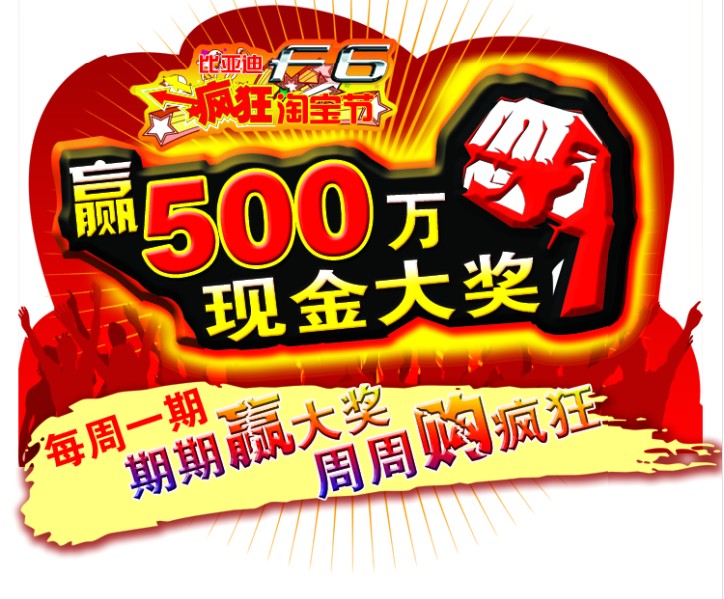 瘋狂的500萬現(xiàn)金大獎,瘋狂的淘寶勁爆鉅惠價格,瘋狂的淘寶大禮包盡在比亞迪科園大道康和富利“比亞迪F6瘋狂淘寶節(jié)”,獎金豐厚,禮品數不勝數。