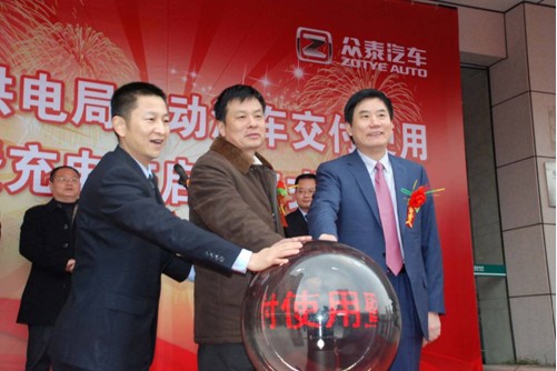 永康市副市長樓初陽、永康供電局局長汪志奕、眾泰控股集團董事長吳建中