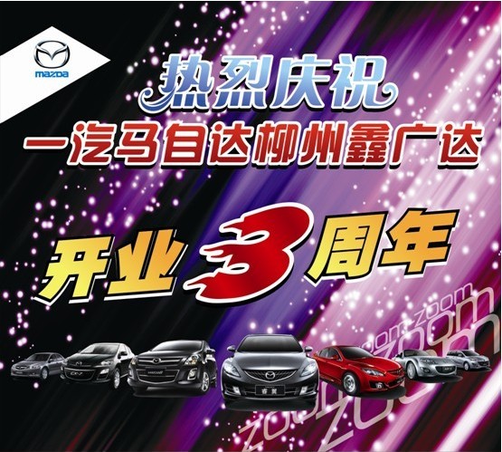 一汽馬自達(dá)柳州鑫廣達(dá)4月迎來三周歲生日,全系車型共慶,進(jìn)店有驚喜,油費(fèi)由你拋。