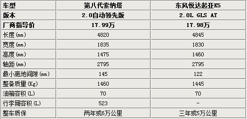 北京現(xiàn)代旗下的索納塔經(jīng)過全新?lián)Q代于4月8日正式上市,售價(jià)為16.69-24.99萬。第八代索納塔無論是外形還是動力都有全新的改變。與剛剛上市的東風(fēng)悅達(dá)起亞K5相同,都分別搭載了2.0L引擎和2.4L引擎,這款新車的市場競爭力到底如何呢?我們與同樣是上市不久的B級車K5進(jìn)行了對比。接下來我們將對這兩款車的參數(shù)、舒適性和安全性等方面進(jìn)行比較,希望對您的購車有一定幫助。