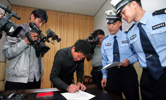 圖為陳某昨晚在“行政處罰告知筆錄”上簽字