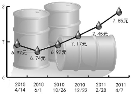 當(dāng)各界人士還在為油價(jià)破“7”戚戚然時(shí),國(guó)內(nèi)油價(jià)卻已經(jīng)邁入“8”時(shí)代了。4月7日,國(guó)內(nèi)成品油價(jià)格再度上調(diào),汽柴油每噸分別上調(diào)500元和400元,這已是三個(gè)月內(nèi)發(fā)改委第二次上調(diào)成品油價(jià)格。目前,北京地區(qū)93#汽油、97#汽油、0#柴油每升最高零售價(jià)已漲至7.85元、8.36元、7.79元。與此同時(shí),中國(guó)人民銀行也于4月5日再次上調(diào)金融機(jī)構(gòu)人民幣存貸款基準(zhǔn)利率,而這次加息距上一次同樣不超過(guò)三個(gè)月。