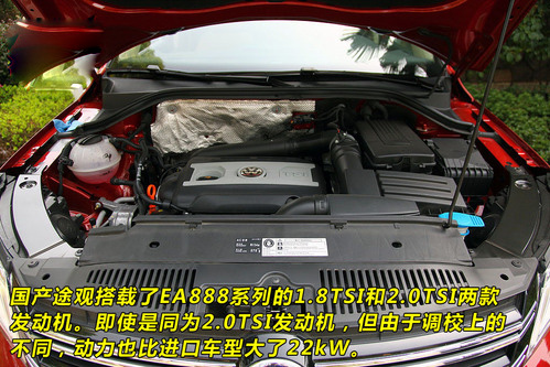 途觀的動力系統(tǒng)非常具有優(yōu)勢,它使用了大眾比較先進(jìn)的EA888系列,有1.8TSI與2.0TSI兩個(gè)排量,其中1.8TSI發(fā)動機(jī)最大功率118kW/5000-6200rpm,峰值扭矩250Nm/1500-4200;2.0TSI發(fā)動機(jī)最大功率147kW/5000-6000rpm,峰值扭矩280Nm/1800-5000rpm。動力方面自然是不容小覷的。而且它使用了技術(shù)成熟的6擋手自一體變速器,在一款越野車上面,技術(shù)成熟才是最為穩(wěn)妥的。