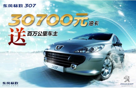 2011年5月6日—2011年5月18日內(nèi),東風(fēng)標(biāo)致307在全國范圍內(nèi)開展“尋找百萬公里車主,贈萬元油卡活動”。屆時,只要行程達(dá)到990000公里以上且無大修記錄,并第一位通過官方活動論壇報名的車主,即可獲得價值30700元汽油卡一張。除此之外,普通車主也可報名參與互動,本次活動設(shè)立數(shù)名幸運參與獎,并有豐富的獎品奉送。