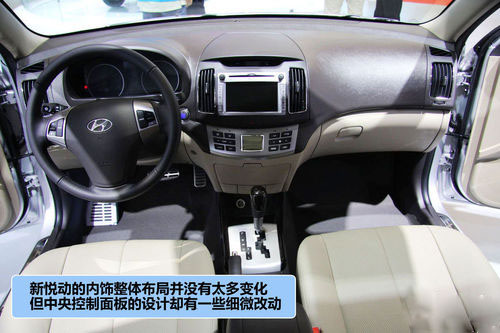 新悅動的內(nèi)飾整體風(fēng)格與老款相比并沒有太多變化,但中央控制面板的設(shè)計卻有一些細微改動。其中包括中控臺的設(shè)計以及用料方面。新悅動的內(nèi)飾看上去更顯年輕,而老款車型在相比之下卻顯得有幾分陳舊。新悅動采用了全新設(shè)計的儀表盤,行車電腦顯示屏以及水溫表、油箱表都位于中央位置,與老款傳統(tǒng)的儀表盤設(shè)計風(fēng)格有明顯的不同。而新悅動的中控面板采用了新的設(shè)計元素,增加了GPS顯示屏。音響控制區(qū)與空調(diào)控制區(qū)的按鈕布局也有新變化,而且新悅動還增加了自動恒溫空調(diào)。