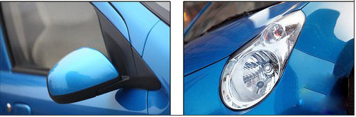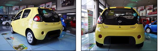 總體看新奧拓的車頭和側(cè)面的設(shè)計手法比較見功力,而且明顯的降低了風阻系數(shù)。但是見棱見角而且稍顯臃腫的車尾就是個明顯的短板了。這方面熊貓的整體設(shè)計非常流暢,車頭和車尾的設(shè)計理念也非常一致,雖然仿生學的設(shè)計思路需要適應,但熊貓造型設(shè)計的整體感,還是非常有優(yōu)勢的。值得一提的是,新奧拓的背影雖然差強人意,但是整車的鈑金工藝非常出色。