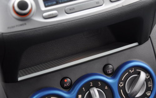 熊貓的前排水杯架位置和新奧拓相同,前車門上的地圖格尺寸也是一樣,不過司機左膝蓋上方的儲物格就是新奧拓所不具備的了,當然高配版本中控面板上儲物格的缺失就有些遺憾了,點煙器上方的儲物格要是不帶蓋子就好了。