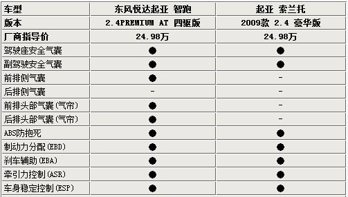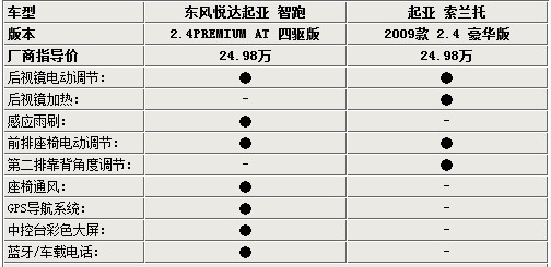 如果說(shuō)在之前的對(duì)比中,智跑和索蘭托并未真正的分出勝負(fù),那么在這個(gè)表格中,智跑的優(yōu)勢(shì)得以較為明顯的表現(xiàn)出來(lái)。智跑擁有座椅通風(fēng)、GPS導(dǎo)航、中控臺(tái)彩色大屏和車載電話等多種人性化便捷配置,令駕駛更加便捷舒適。美種不足的是第二排靠背角度不能調(diào)節(jié),損失了乘坐者的舒適度。整體來(lái)說(shuō),智跑的配置還是相當(dāng)具有誠(chéng)意的。