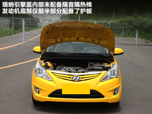 瑞納的發(fā)動(dòng)機(jī)艙配置并沒(méi)有什么過(guò)大的亮點(diǎn),引擎蓋支撐桿為常見(jiàn)的手動(dòng)式支撐桿,發(fā)動(dòng)機(jī)蓋內(nèi)部也并沒(méi)有配備隔音隔熱棉。發(fā)動(dòng)機(jī)艙底部?jī)H前半部分配備了護(hù)板,整體保護(hù)并沒(méi)有得到全面的保障。