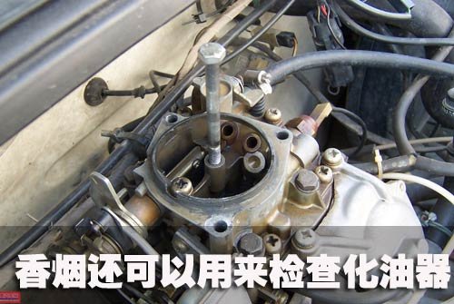例如,一化油器車無怠速,把化油器拆開洗凈,并用氣體吹干、吹通后,用一根軟管(如真空分電器提前管)吹煙,先從怠速油量孔,再到怠速空氣孔,最后煙霧從化油器怠速混合氣調(diào)整螺絲處漏出,才算怠速油道和空氣道暢通,否則應再重新檢查,直到冒出煙霧為止。