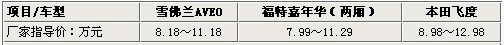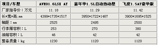 從表中可以看出飛度定價在三款車中是最高的,不過其12.98萬元的車型擁有的是全景天窗。我們挑選了三款都在11萬以上車型來對比,不過在這個價位上三款車除了飛度以外均是頂配車型,分別是AVEO 1.6L SX AT、嘉年華1.5L 自動勁動版、飛度1.5L豪華版AT。