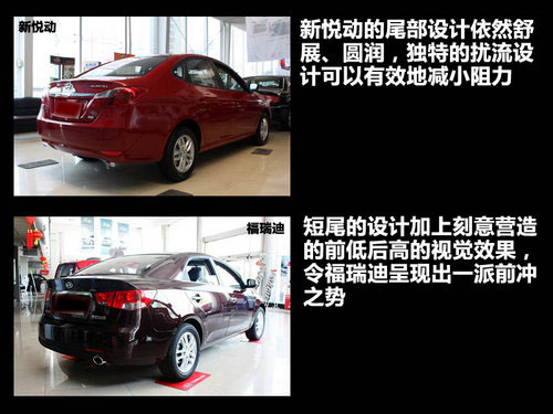 大燈處的設(shè)計(jì)富有張力,似乎還帶有一些攻擊性。近幾年韓國車也在漸漸地形成自己的家族風(fēng)格,從悅動(dòng)的前臉、腰線等部位都能看出它與現(xiàn)代最高級別車型雅科仕的異曲同工。福瑞迪的外觀顯然與悅動(dòng)的柔和風(fēng)格不同,一派硬朗的車身線條貫穿全車,短尾的設(shè)計(jì)加上刻意營造的前低后高的視覺效果,令福瑞迪呈現(xiàn)出一派前沖之勢。新悅動(dòng)車尾的設(shè)計(jì)倒是顯得更加活潑一些,而福瑞迪的車尾看起來更加平直。