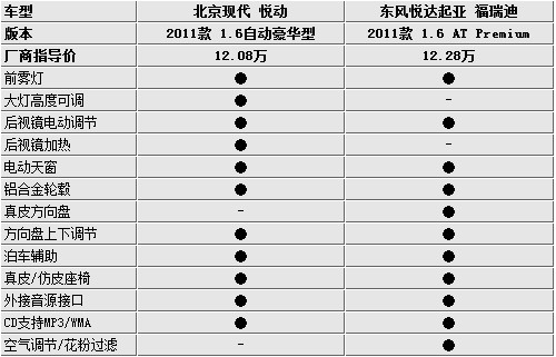 在配置方面,兩車相差不大,新悅動(dòng)比福瑞迪多了大燈高度可調(diào)節(jié)和后視鏡加熱配置,而福瑞迪則增加了真皮方向盤和空氣調(diào)節(jié)配置。兩款車相對比而言,個(gè)人感覺還是新悅動(dòng)的配置比較實(shí)用。在性價(jià)比較高的特征上,兩車均做到了盡可能達(dá)到的配置,值得稱贊。