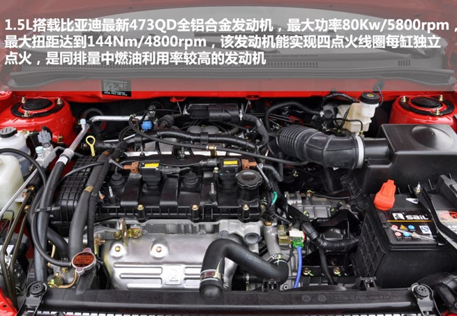 比亞迪G3R目前有1.5MT、1.8CVT兩個排量車型,全系達到國Ⅳ排放標準,無論在動力還是燃油經(jīng)濟性上都有不俗的表現(xiàn)。其中1.5L搭載比亞迪最新473QD全鋁合金發(fā)動機,最大功率80Kw/5800rpm,最大扭距達到144Nm/4800rpm,該發(fā)動機能實現(xiàn)四點火線圈每缸獨立點火,是同排量中燃油利用率較高的發(fā)動機。