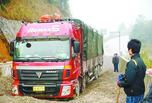 5月26日,對于王先生來說是驚心動魄的一天。這天,當他駕車經(jīng)過這路段時,由于路陡必須踩著剎車行駛,時間長了,剎車轂不堪重負而“罷工”,他的貨車像一匹脫韁的野馬向前飛奔而去。萬分緊急之中,他看到了右邊就有一條分岔車道,而標示牌“剎車失靈”提醒了他。他下意識地右打方向盤,貨車朝著避險車道沖去,當輪子陷入1米多深的泥沙時,貨車終于停了下來。王先生也驚出了一身冷汗。