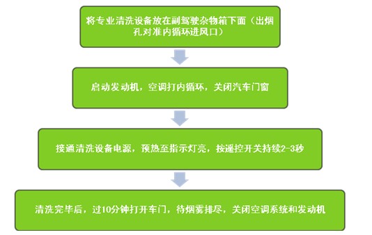 通過(guò)專業(yè)的清洗設(shè)備,將液體轉(zhuǎn)化為煙霧,再用空調(diào)內(nèi)循環(huán),將煙霧噴射到空調(diào)管理和車內(nèi)各個(gè)縫隙角落,迅速殺滅霉菌和細(xì)菌,消除異味,恢復(fù)車內(nèi)的清新。
