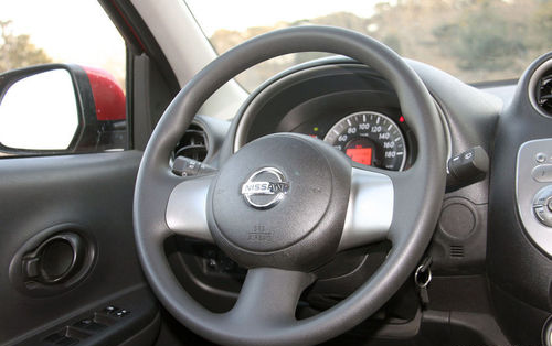 與造型的可愛(ài)路線(xiàn)不同,瑪馳的內(nèi)飾給人以一種粗獷的味道:看中控臺(tái)上的面板,都是粗糙的麻面!不要誤會(huì),這不是日產(chǎn)的做工變糙了,而是它的設(shè)計(jì)師為了造成漫反射,從而降低你在烈日下開(kāi)車(chē)時(shí)的視線(xiàn)刺激而特意為之。細(xì)看之下,這些部件的接縫都都還是比較均勻細(xì)致的。