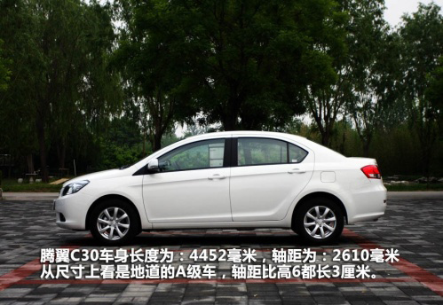 騰翼C30的外觀設(shè)計(jì)并沒有太多的出彩之處,但卻非常符合家用車型大方中庸的設(shè)計(jì)理念,設(shè)計(jì)上也顯得比較成熟。 騰翼C30車身尺寸為長4452mm、寬1705mm、高1480mm,軸距2610mm,整車整備質(zhì)量為1145Kg。