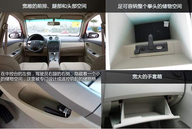 再來看看G3R天賦異稟的各項(xiàng)空間優(yōu)勢吧:從資料來看,G3R的長寬高分別達(dá)到4380×1705×1490mm,再加上2600mm的超長軸距,在同級別車型中相當(dāng)稀有,如此有競爭力的空間優(yōu)勢令G3R堪當(dāng)大任,也讓同級別車型花容失色。除了這些顯性的空間,G3R還擁有多項(xiàng)隱性的空間優(yōu)勢:寬敞的前排、腿部和頭部空間,足可容納整個(gè)拳頭的儲物空間,寬大的手套箱,令人愛不釋手;中控臺左側(cè)、駕駛員右腿右側(cè),隱藏著一個(gè)專門放置遙控鑰匙的小儲物格,可謂人性化十足。獨(dú)坐車內(nèi),寬敞的空間、舒適的坐姿、愜意的享受,實(shí)可說是流連忘返、美不勝收,再開啟音樂播放器,陶冶下美妙的音樂,足以羨煞旁人!