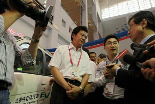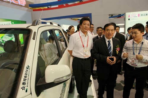 中共浙江省委副書記、省長(zhǎng)呂祖善,在金華市副市長(zhǎng)金中梁陪同下蒞臨眾泰純電動(dòng)汽車展位