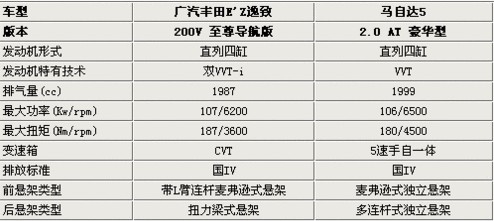 動(dòng)力方面,兩款車均搭載2.0L直列四缸發(fā)動(dòng)機(jī),逸致的最大功率達(dá)到了107千瓦,最大扭矩則為187牛米,與之匹配的是CVT變速箱,不僅將動(dòng)力很好輸出,更是兼顧了換擋平順性與燃油經(jīng)濟(jì)性。馬自達(dá)5在動(dòng)力上稍顯落后,不過5速手自一體變速器與發(fā)動(dòng)機(jī)的匹配更為成熟。