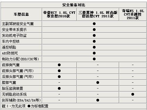 縱觀3款車型的安全配置,主副駕駛安全氣囊、發(fā)動機電子防盜、遙控鑰匙以及ABS+EBD等主動安全在他們身上都能夠找到;EC8的前排側氣囊+前后頭部氣簾以及胎壓監(jiān)測的安全配置的配備可以說將這個級別車型的安全做到了極致;翼神雖然沒有EC7安全配置的豐富,但膝部安全氣囊的配備對于腿部做到了很好的安全被動防護;奇瑞E5的主被動安全做得平常無奇,但無鑰匙進入以及一鍵啟動變相的提升了您的尊榮感和舒適性~