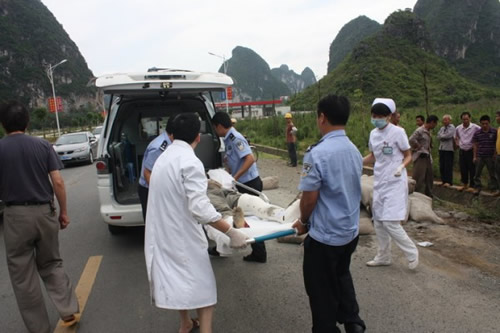 當(dāng)天下午3時(shí)許,天等縣公安局交警大隊(duì)值班室接到群眾報(bào)案稱:在天等縣縣道568線3KM+200M處有一輛手扶拖拉機(jī)自翻在路邊,司機(jī)被壓在車(chē)底下,血流不止,情況很是危急,要求民警即刻出警。接到報(bào)警后,值班民警立即組織人員火速趕赴事故現(xiàn)場(chǎng)。