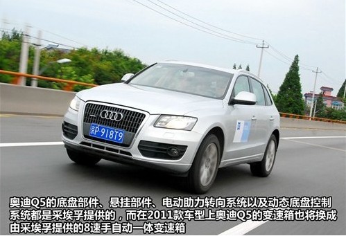 在本次主辦方提供試駕的奧迪A6L 3.0TFSI quattro與奧迪Q5 2.0T車型上部分底盤部件、懸掛支架和電動(dòng)助力轉(zhuǎn)向系統(tǒng)等都是有采埃孚公司提供。而在下一代奧迪A6L(C7)和前不久剛上市的2011款?yuàn)W迪Q5上采用的8速手自一體變速箱也將有采埃孚提供。