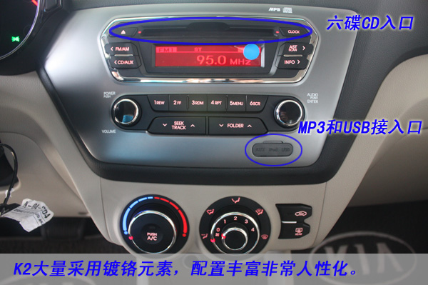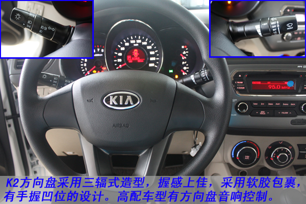 相比動感的外形K2的內(nèi)部設(shè)計(jì)要“家庭”很多,更加符合K2的定位。內(nèi)飾有純黑以及黑色+米色兩種色調(diào)搭配,相對K5功能齊全、按鍵豐富的中控臺,K2的中控臺簡潔了很多,中控臺中央部分向駕駛員略微傾斜,但整體布局和K5仍保持了高度的相似。值得贊許的是K2的內(nèi)飾部件做工精細(xì),雖然不可避免的采用了塑料質(zhì)地,但并不感覺生硬,巧妙地營造出了不錯(cuò)的整體內(nèi)飾感覺。
