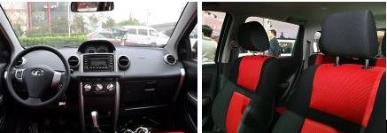 進(jìn)入炫麗CROSS的車內(nèi),你會(huì)發(fā)現(xiàn)入眼的都是可愛的圓形,圓形的儀表盤,圓形的空調(diào)出風(fēng)口、圓形的電臺(tái)頻道切換……在這塊曲線柔和的中控臺(tái)上你很難找到激發(fā)你激情駕駛的激進(jìn)欲望。永不過時(shí)的紅黑相配的座椅則為這款可愛的小車增加了更多的時(shí)尚和亮麗的感覺。遮陽(yáng)板上的化妝鏡、中控臺(tái)上豐富的儲(chǔ)物能力以及前排座椅后的掛鉤,都是為迎合女性駕車需求而貼心設(shè)計(jì)的。
