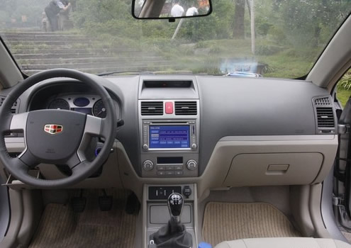 帝豪EC7內(nèi)飾采用上深下淺的風(fēng)格設(shè)計,四幅方向盤外部包裹的真皮手感一般,中央塑料部分有些松散并且位移量稍大。另外方向盤不具備多功能按鍵,對于高配車復(fù)雜的中控功能來說,行車操作很不方便。