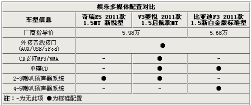 五、娛樂多媒體配置對比(V3配置相對實(shí)用,但都沒有太大亮點(diǎn)):
